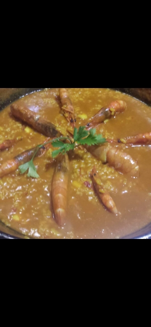 Arroz meloso con sepia de la lonja de gandia, calamares, y Gambones (mínimo para 2 personas,) 9€ la racion