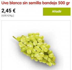 Uva blanca sin semilla, bandeja 500g