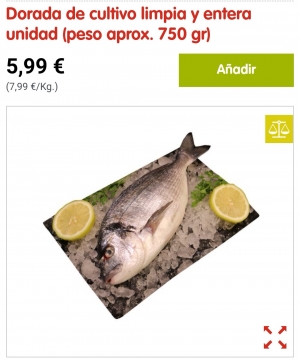 Dorada limpia y entera unidad peso 750g aprxeso 7