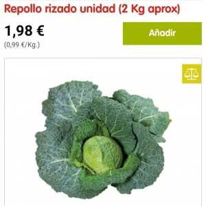 Repollo rizado ud 2kg aprx