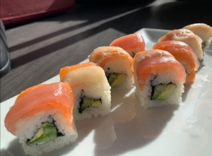 Salmón y aguacate, envuelto en salmón y atún