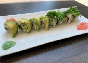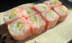 Salmón, queso y aguacate envuelto en agucate y algas